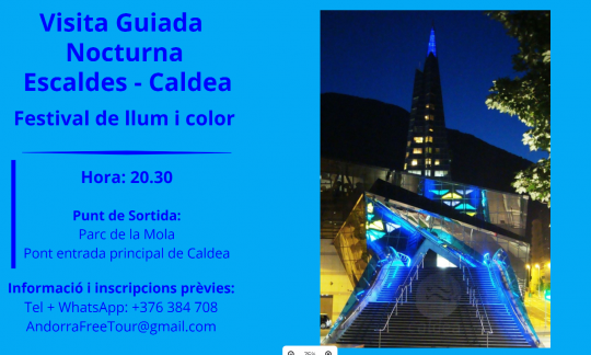 Vinguin a gaudir d'Escaldes – Caldea quan la claror del dia s’acaba i es converteix en foscor. En el marc d'un agradable passeig per la parròquia d’Escaldes-Engordany que a aquestes hores es converteix en un festival de llum i color que contribueix a alegrar considerablement els nostres sentits i a fer reviure les nostres emocions.