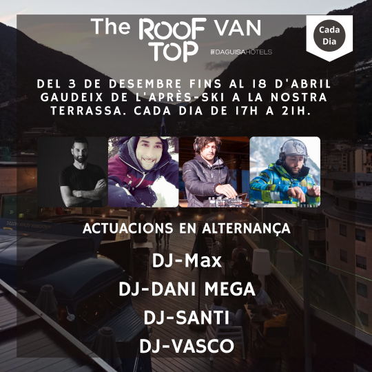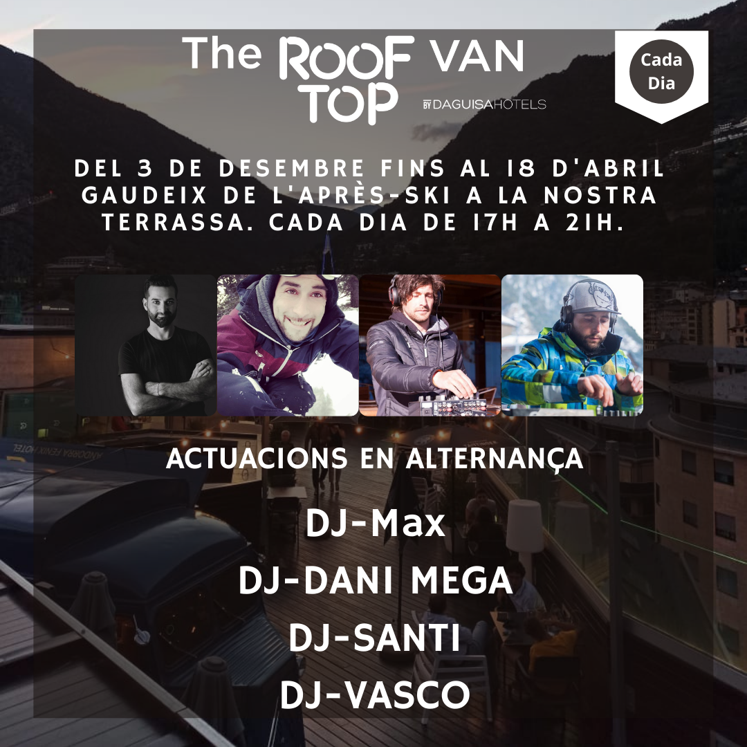 Els quatre DJ residents s’alternen tots els dies de la setmana, de 17 a 21 h, fins al 18 d‘abril a The Roof Top Van.