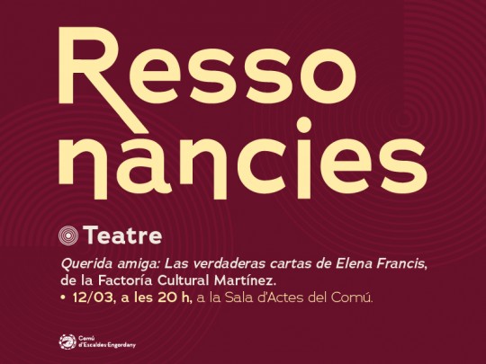 QUERIDA AMIGA: LAS VERDADERAS CARTAS DE ELENA FRANCISen el marc de la programació RESSONÀNCIES. Veus que vibren, històries que transformen
