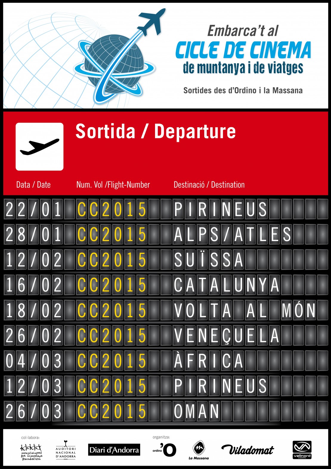 Els comuns d’Ordino i de la Massana organitzen conjuntament aquest cicle que reuneix l’especificitat del cinema de muntanya, en totes les seves variants (escalada, alpinisme, esports d’aventura, etc...), i l’eclecticisme de les xerrades sobre viatges arreu del món.