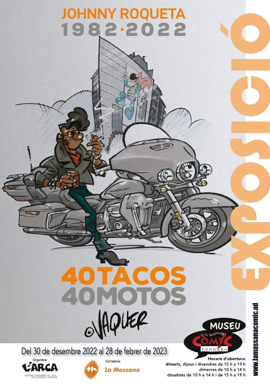 Exposició que rememora els 40 anys del personatge “Johnny Roqueta”, del dibuixant Rafael Vaquer, amb il·lustracions de les diferents motos del personatge aixì com algunes de les pàgines del còmic.