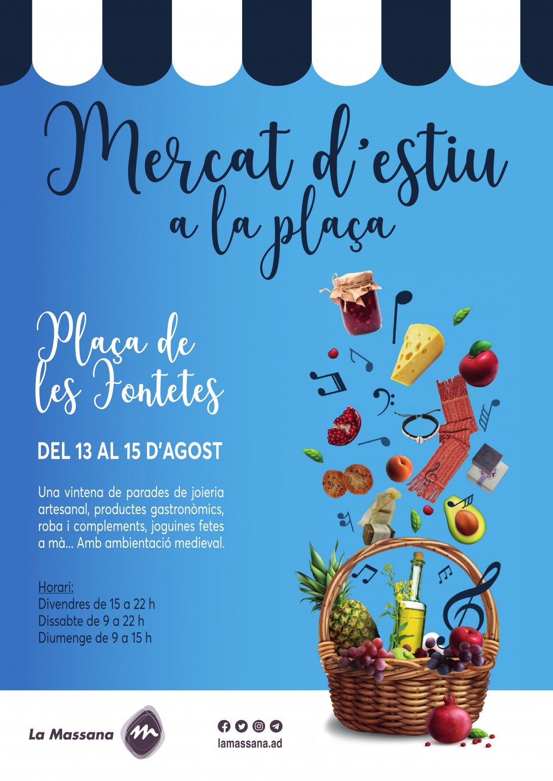 Un mercat que acollirà una vintena de parades de joieria artesanal, productes gastronòmics, roba i complements, joguines fetes a mà..., amb ambientació medieval.