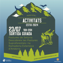 Sortida guiada sobre la ramaderia i les pastures d'Andorra. Desplaçats a les pastures de Setúria a La Massana, podreu descobrir algunes de les particularitats del model de ramaderia extensiva d'Andorra i la seva influència en les pastures de muntanya: la conservació de la biodiversitat floral d’aquests hàbitats i el paisatge rural, la prevenció de riscos naturals, la identitat cultural del país i l'economia de proximitat.