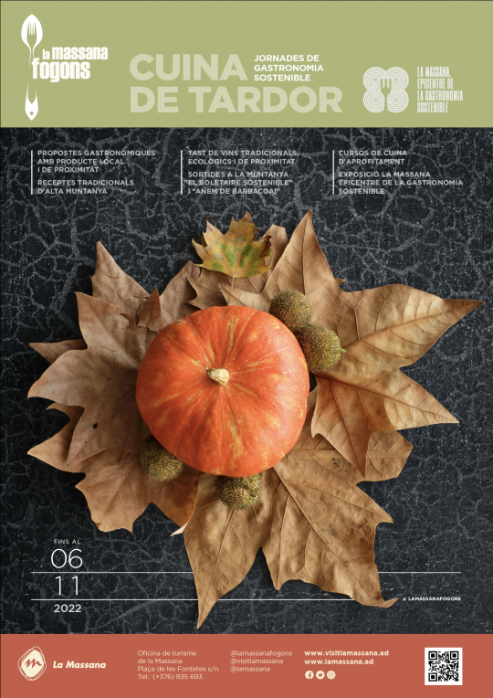 Vine a descobrir les engrescadores propostes culinàries que els restauradors de la Massana han enllestit per a aquesta edició de la cuina de tardor de “La Massana Fogons”. Un any més, els productes de temporada són l’ensenya dels plats i menús que els afeccionats a la bona taula podran degustar, tant si és per dinar com per sopar.
