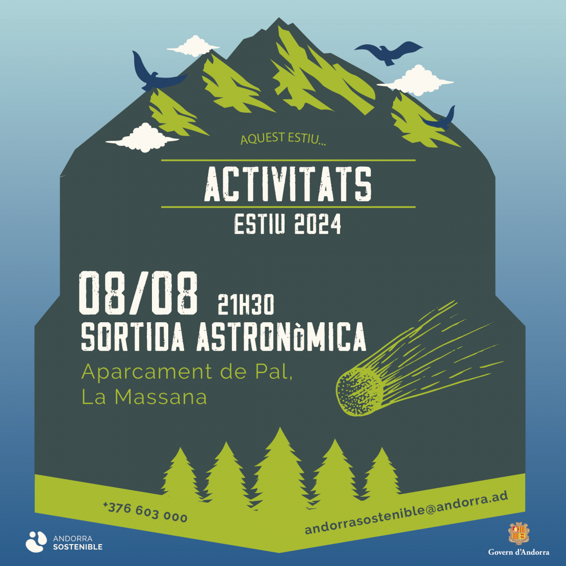Aprofitant la millor setmana per veure les Llàgrimes de St. Llorenç farem una explicació sobre la importància del cel fosc i els efectes de la contaminació lumínica per l’observació astronòmica. També farem una ruta per les constel·lacions amb el làser verd acompanyat d'una mica de mitologia i curiositats vàries d'astronomia. L’activitat inclou l’observació en directe i individualitzada amb telescopi de 3 astres, Júpiter, Saturn i la Lluna.