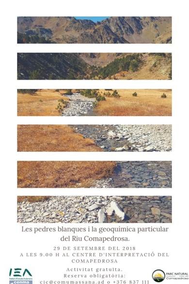 L’activitat es farà a través d’una excursió de mig dia, i farem gairebé 400 m de desnivell per un camí de dificultat mitjana fins a un punt del riu Comapedrosa. Hi farem mesures i tindreu les explicacions a càrrec del Dr. Ramon Copons Llorens i de la Dra. Elena García Antón sobre la geoquímica única d’aquest riu.