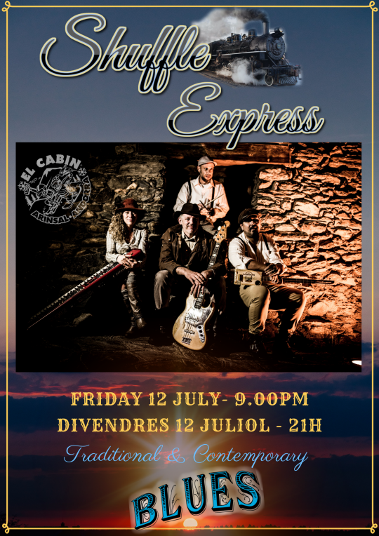 Tornen les nits de música en directe a “El Cabin”! Vine a gaudir del millor ambient d’Arinsal en una nit especial, de pur blues en diferents estils (swing, rock, shuffle, etc) i versions d’artistes clàssics i contemporanis del blues com BB King, Eric Clapton, Muddy Waters, Junior Wells, Joe Bonamassa, Susan Tedeschi i Jr. Watson, entre d’altres; amb composicions pròpies de la banda.