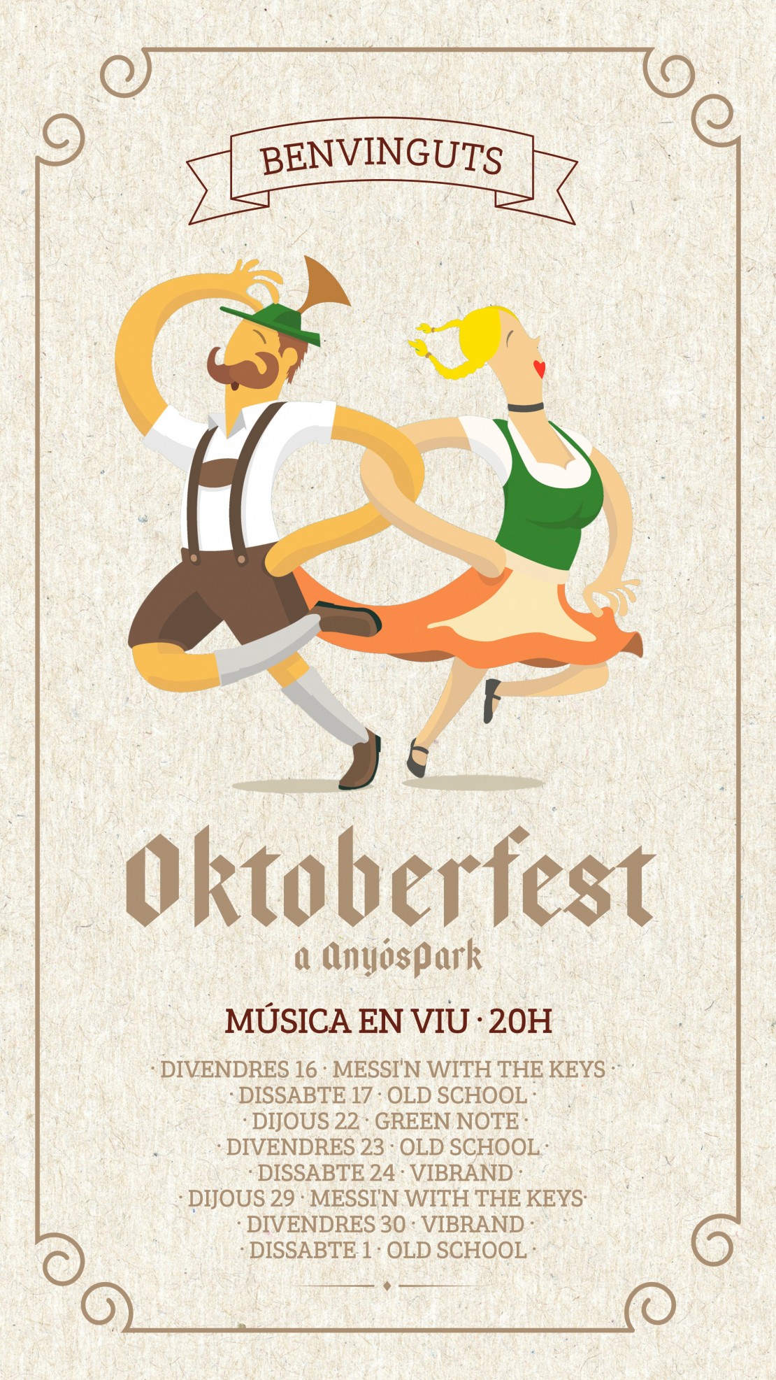 Oktoberfest, l'esdeveniment perfecte de tardes a la terrassa d'Anyóspark. Per gaudir de música en directe, begudes i gastronomia.