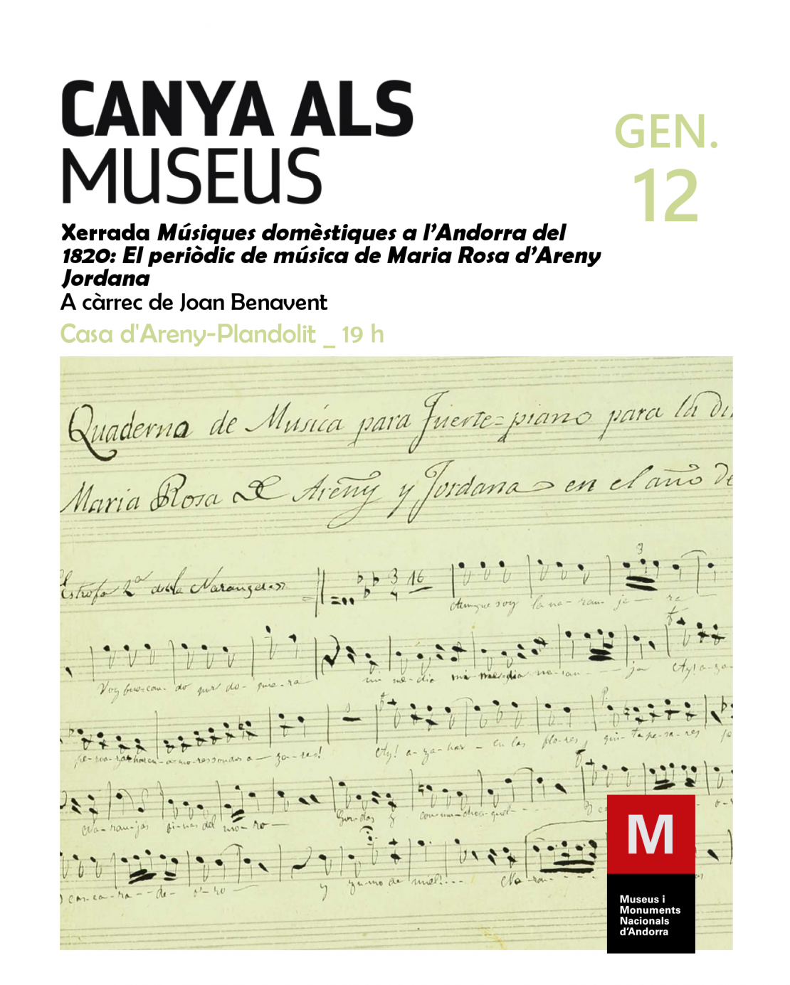 Xerrada Músiques domèstiques a l’Andorra del 1820: El periòdic de música de Maria Rosa d’Areny Jordana