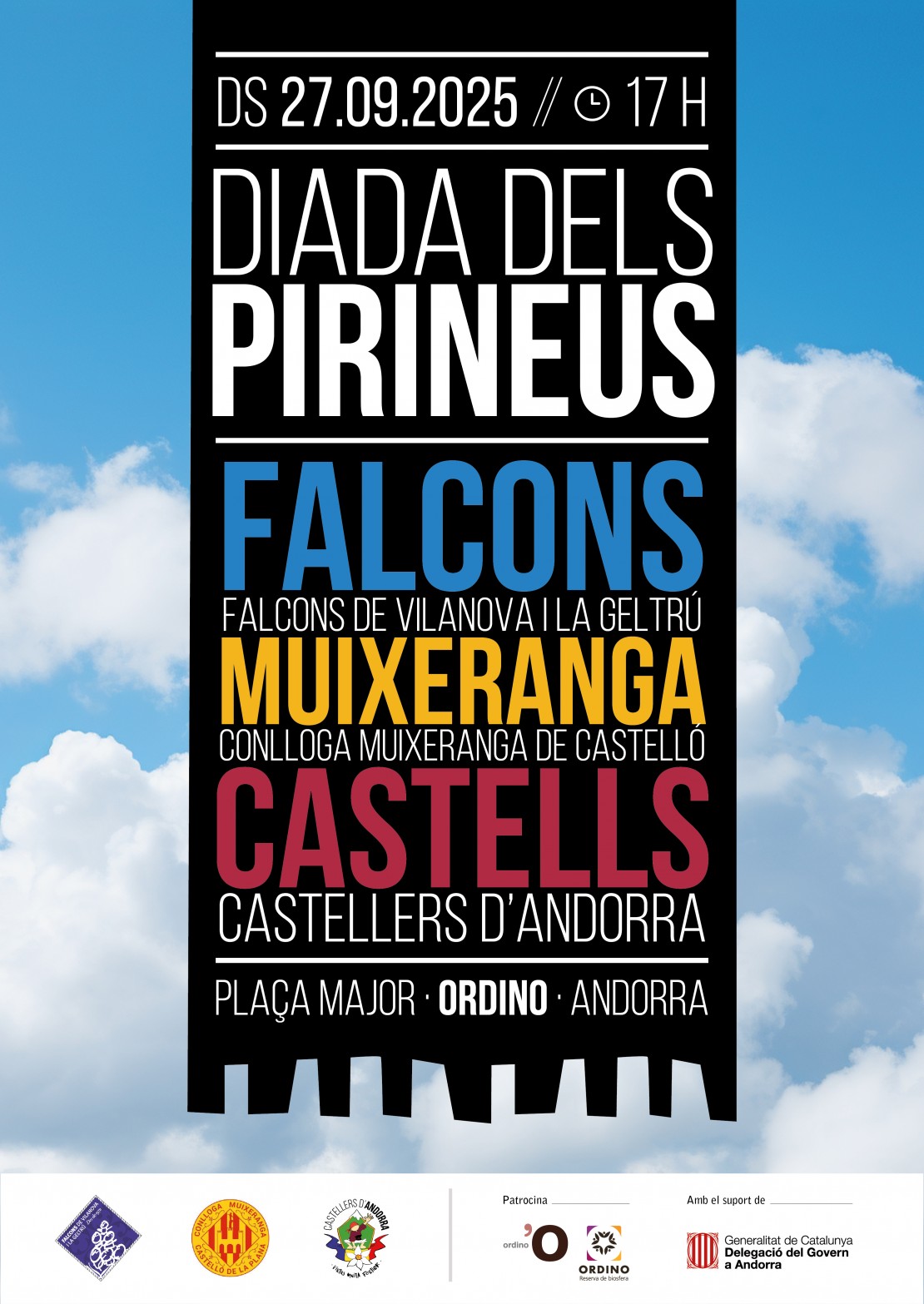 Diada dels Pirineus: Falcons, Muixeranga i Castells, amb Falcons de Vilanova i la Geltrú, Conlloga Muixeranga de Castelló i Castellers d’Andorra.