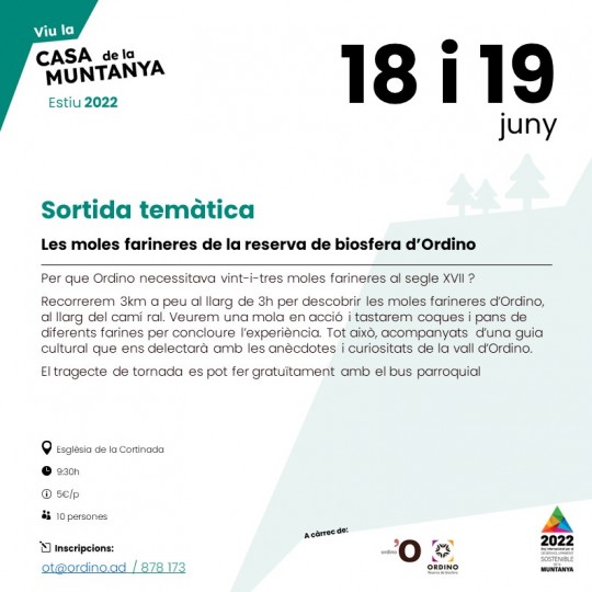 Recorregut de 3 km a peu per visitar les moles farineres d’Ordino amb una guia cultural.