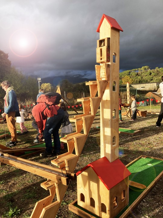 El minigolf artesanal més original del món. Fet de fusta i amb enginys i sorpreses que posaran a prova les habilitats de grans i petits.