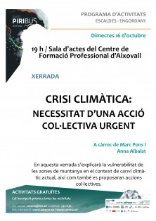 En aquesta xerrada s’explicarà la vulnerabilitat de les zones de muntanya en el context de canvi climàtic actual, així com també es proposaran accions col·lectives