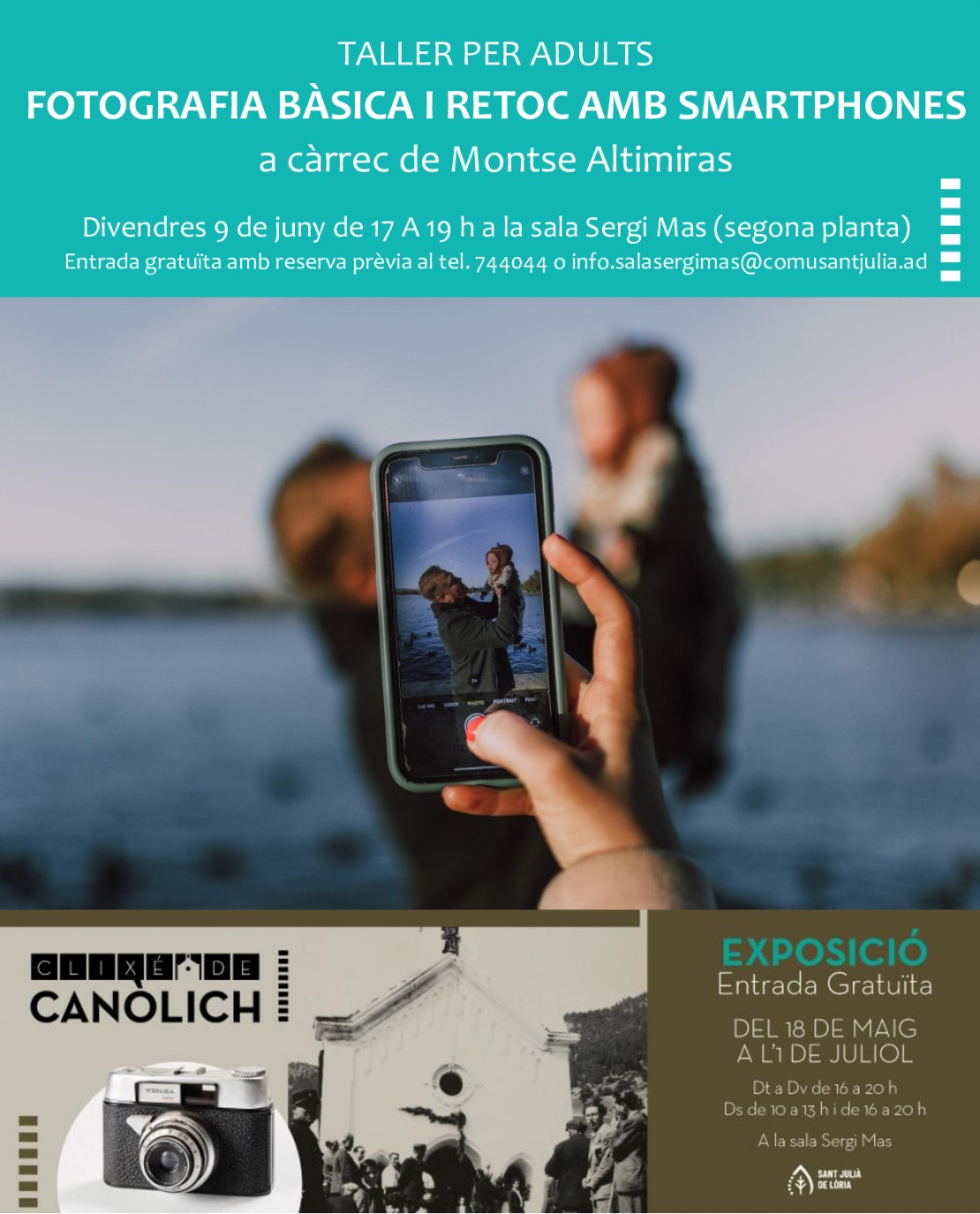 Taller adreçat a adults, per aprendre nocions bàsiques de fotografia i retoc posterior amb telèfons mòbils.