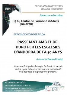 Mostra de fotografies fetes pel Dr. Duró, on s’explicarà la figura del doctor i es farà una presentació dels dos tipus d’esglésies fotografiades.
