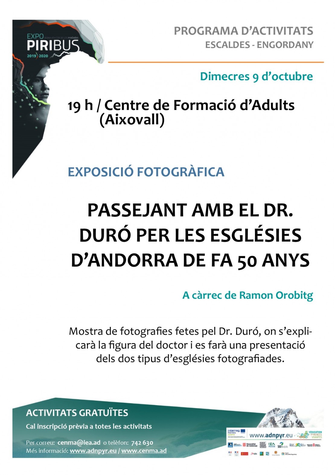 Activitat emmarcada en l’exposició itinerant PIRIBUS “Viatge al cor dels Pirineus”, instal·lada entre el 7 i el 20 d’octubre al Parc infantil d’Escaldes-Engordany.