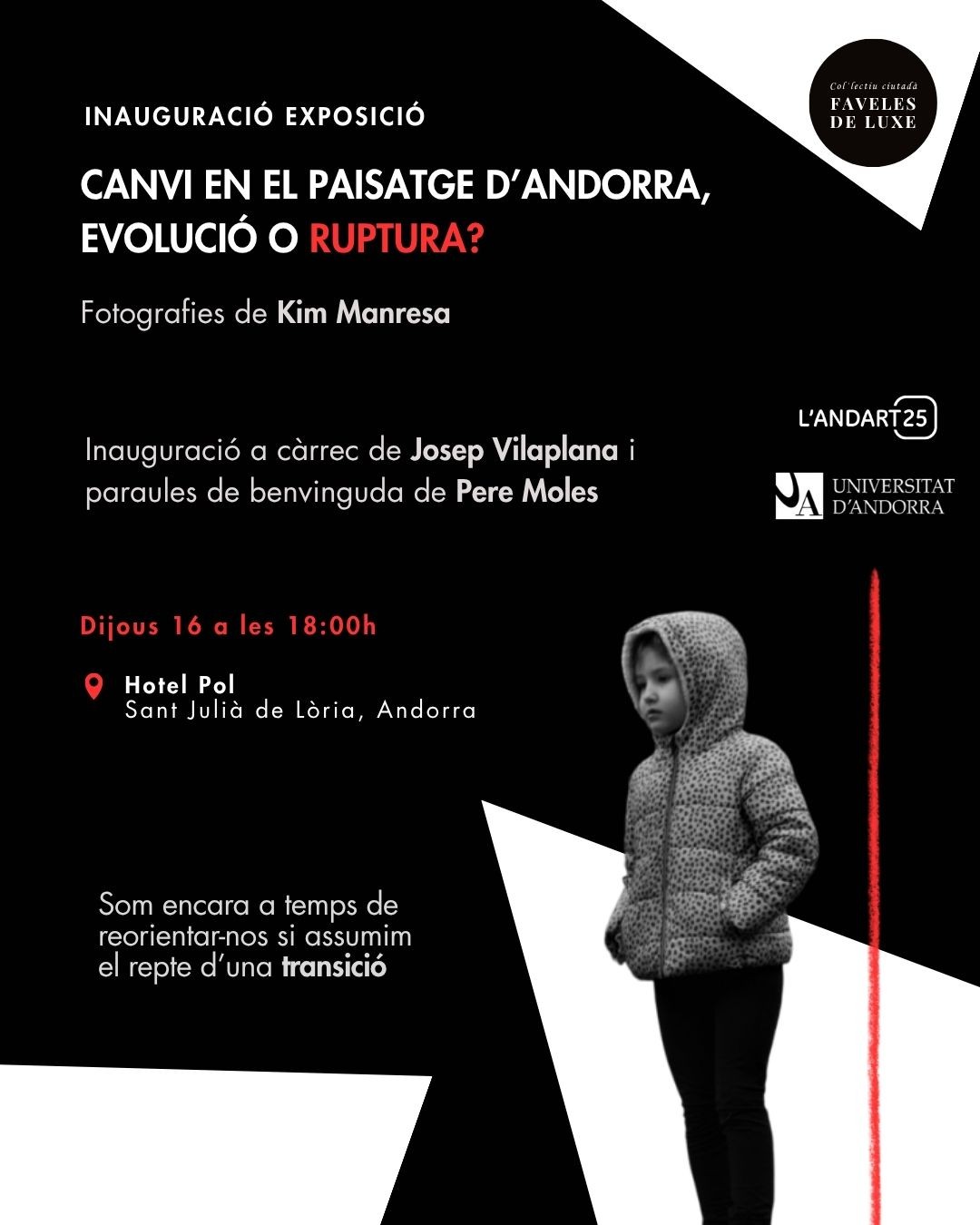 L’exposició, amb fotografies de *Kim Manresa*, proposa una mirada crítica sobre la transformació del paisatge andorrà i convida a reflexionar sobre el model de desenvolupament actual.