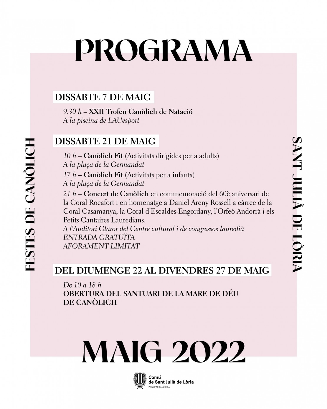 Del dissabte 7 de maig del 2022 fins al dissabte 28 de maig del 2022