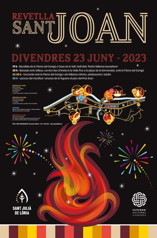 - Plaça de la Germandat, av. Verge de Canòlich fins arribar al parc del Prat Gran per a la lectura del manifest i l’encesa de la foguera a les 00 h