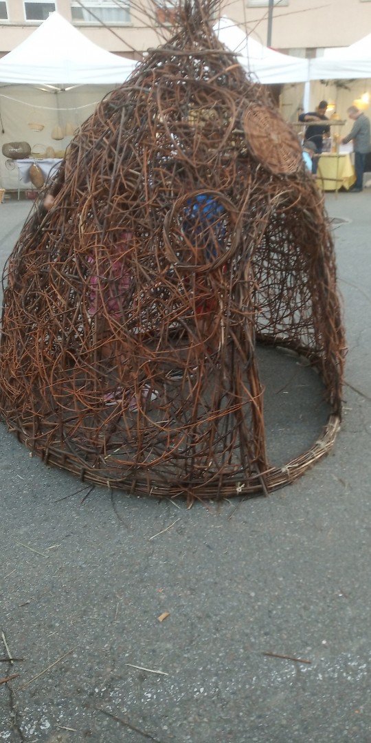 Participa en la construcció amb vímet de la cabana de la bruixa