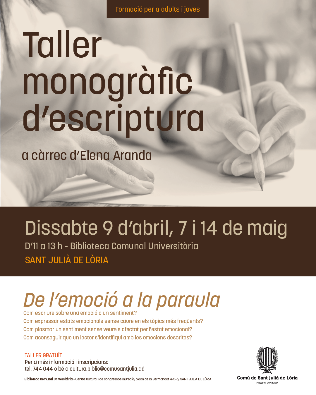 Taller monogràfic d'escriptura: 'De l'emoció a la paraula'16+