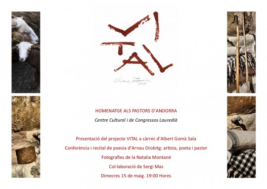 El projecte es presenta a Andorra en el marc d’un homenatge als pastors. Durant l’acte, Albert Gomà Sala explicarà el projecte 'Vital'. L’artista, poeta i pastor andorrà Arnau Orobitg ens explicarà què vol dir ser pastor i ens recitarà les seves poesies. i podrem gaudir de fotografies de la fotògrafa andorrana Natàlia Montané, i de dibuixos i objectes de la col·lecció personal de Sergi Mas.