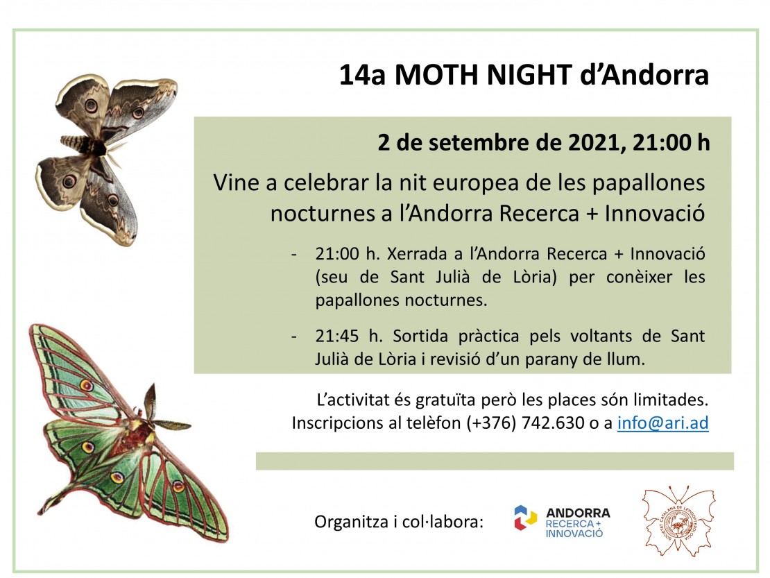 Després de la xerrada es farà una sortida pràctica pels voltants de Sant Julià de Lòria i es durà a terme la revisió d’un parany de llum ultraviolada per detectar i identificar el màxim de papallones nocturnes.